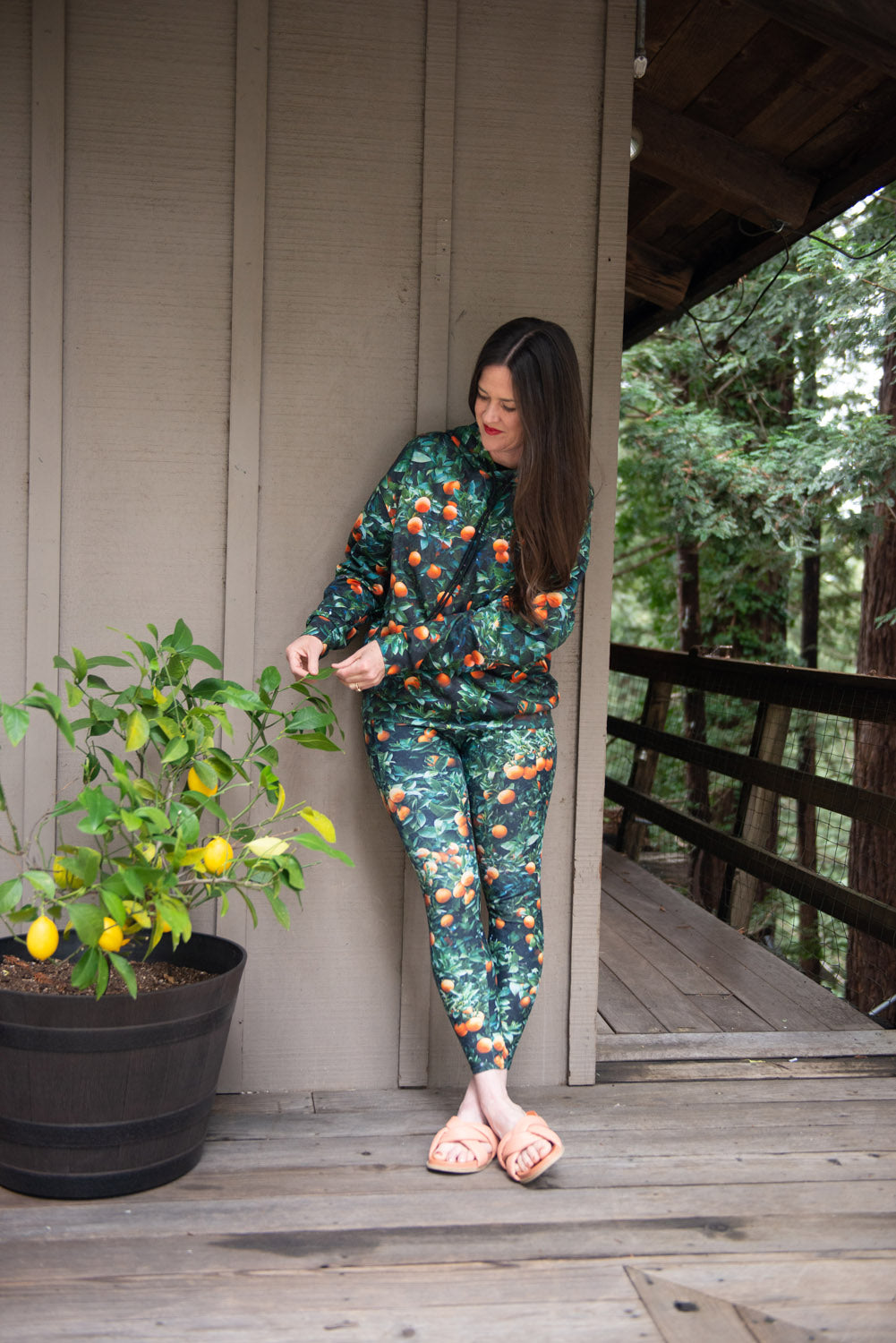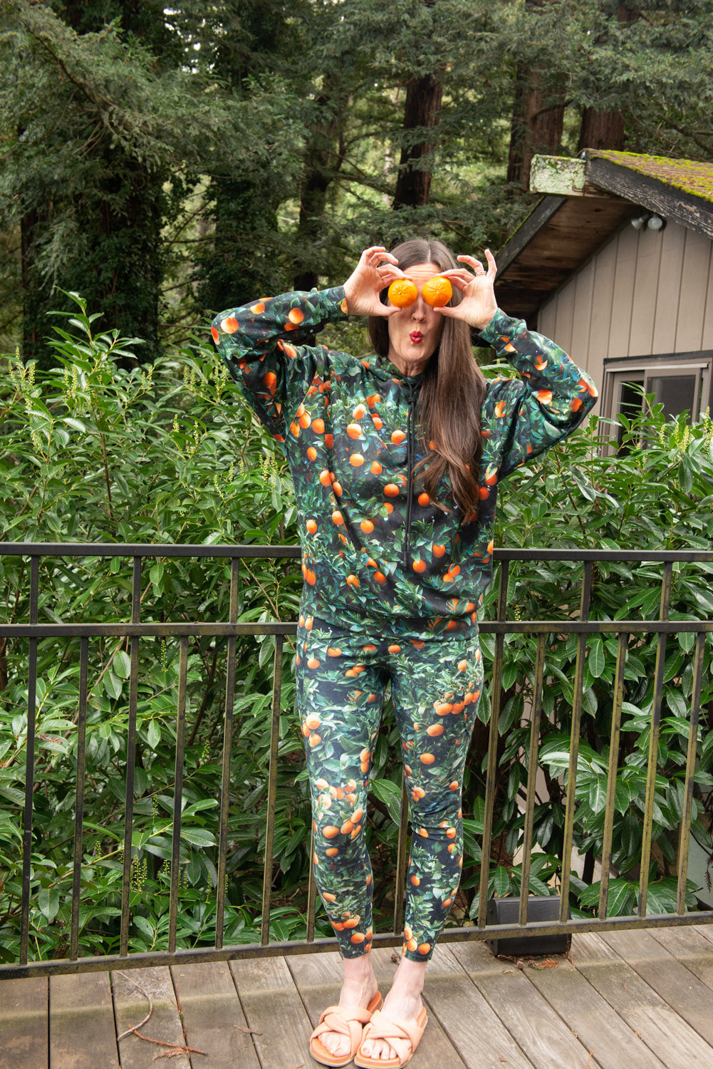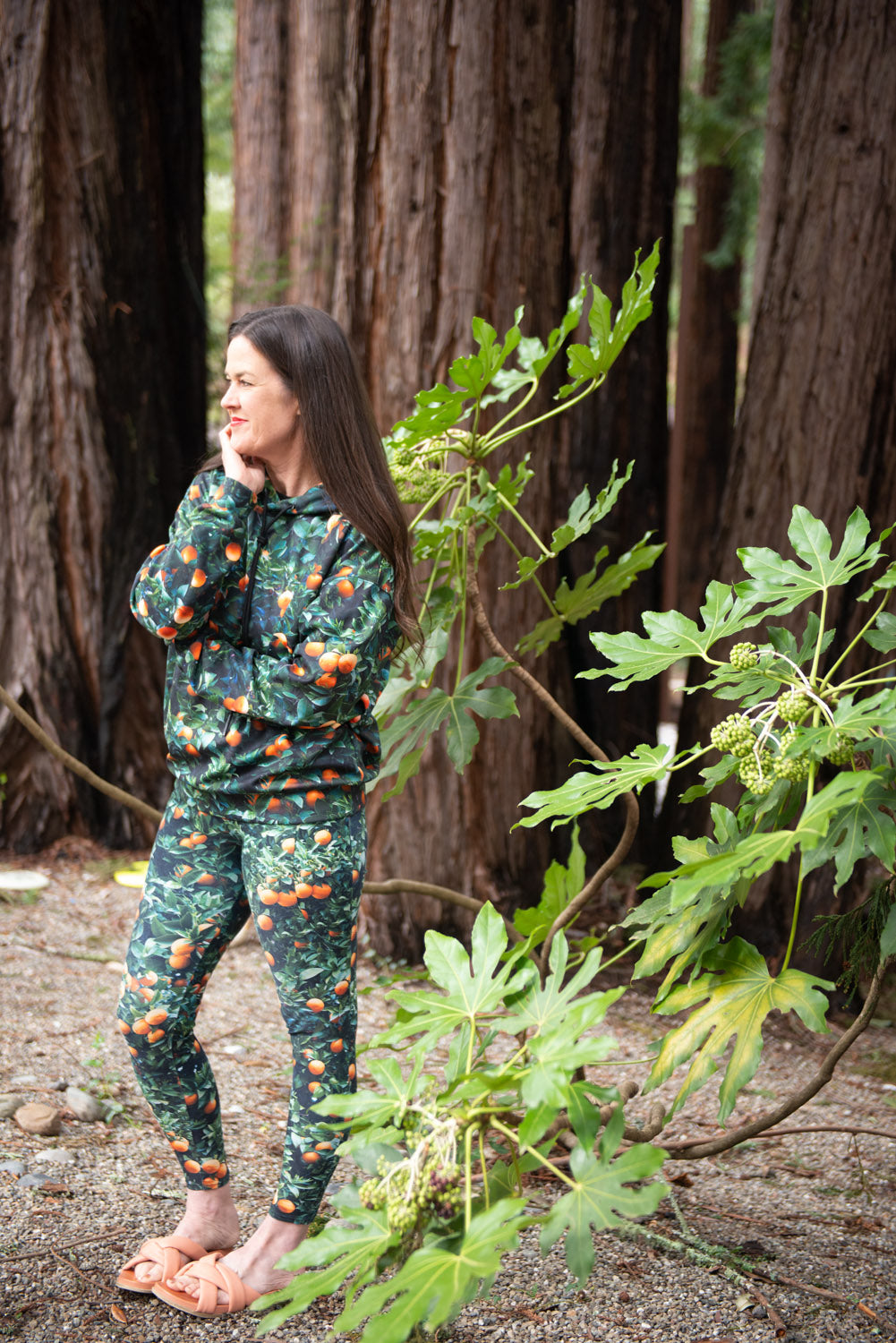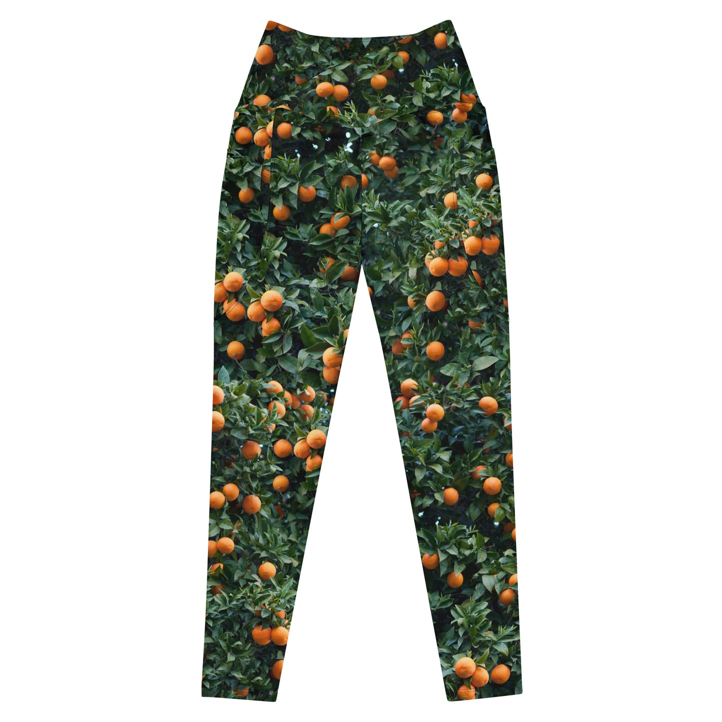Leggings...but make it FUN! These stretchy pants feature Erin Gleeson's photo of an orange tree in California that appears in The Forest Feast Road Trip cookbook. With a pocket on each upper leg, a thick cross-over waist, and a slight compression feel, these are not only functional...but comfortable!